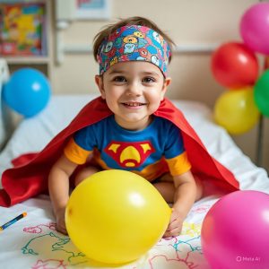 The children grow tired. The clothes wrinkle. Balloons rest against beds or drift to the side. Some children fall asleep still holding what they received. Parents sit beside them, quieter now, adjusting blankets, fixing small things that do not really need fixing.